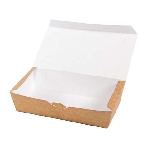 Pølseæske med låg brun pap, og hvid inderside